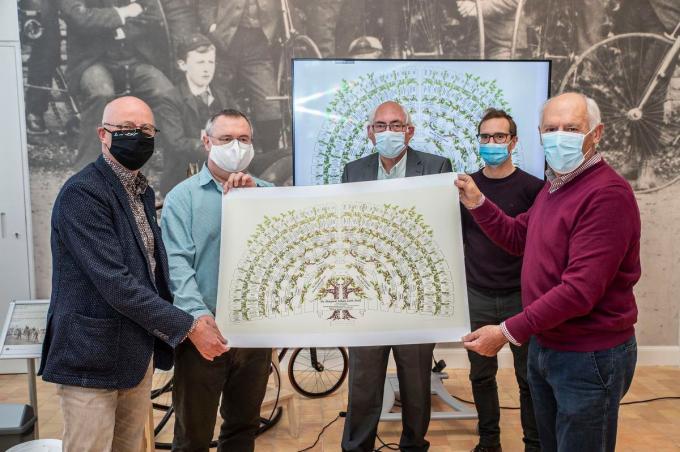 Familiekunde Vlaanderen met Roeselarenaar Wilfried Devoldere als voorzitter van de West-Vlaamse tak, maakte een kwartierstaat op van de laatste Belg die meer dan 40 jaar geleden de Giro won. Een beter tijdstip om de kwartierstaat te overhandigen was er niet dan de rustdag tijdens de Giro 2020. (foto SB)