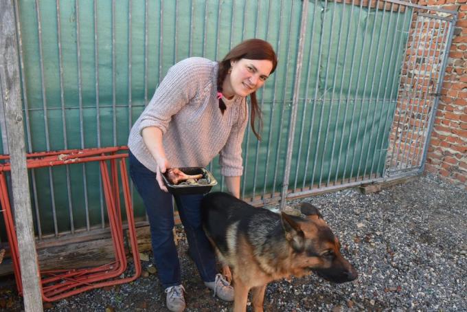 “Maandagnamiddag was ik thuisgekomen met de kinderen en liet ik Chase buiten. Hij kwam plots afgelopen met een been in zijn muil.” Jennifer nam het onmiddellijk af en ging kijken. “Op het einde van onze tuin lag nog vlees. De saus hing over de afsluiting. Aan de buitenkant lag het doosje met de rest van de saus onder een aanhangwagen gegooid.”
