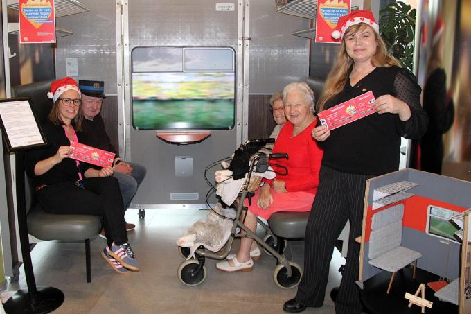 Achter het idee van de treincoupé zitten verscheidene doelstellingen. “Het is een unieke ruimte. Voor bewoners die niet meer kunnen reizen willen we het gevoel van een echte treinreis nabootsen. Door gebruik van realistische beelden en geluiden op het scherm creëren we een levensechte reiservaring en -beleving”, vertelt Sandra. “Een treincoupé roept herinneringen op aan vroegere treinreizen. Het helpt de bewoners om verhalen en ervaringen te delen, wat zowel emotioneel als geestelijk stimulerend is. Voor bewoners die onrustig of doelloos rondwandelen biedt de coupé een kalmerende en interessante omgeving. De treincoupé fungeert ook als een ontmoetingsplek waar bewoners kunnen vertellen, samen herinneringen ophalen, levensverhalen delen met andere bewoners en medewerkers.” Bewoner Bernard was een fervent treinreiziger. “Ik werkte 35 jaar bij het ministerie en dat was elke dag de trein heen en terug naar Brussel Noord. Op de duur heb je alles gezien, dorpjes ontdekt, kerktorens herkend, want je hebt veel tijd om rond te kijken en ook veel tijd om met mensen te babbelen. De treincoupé herinnert mij daaraan. Veel herinneringen komen zo weer bovendrijven.”
