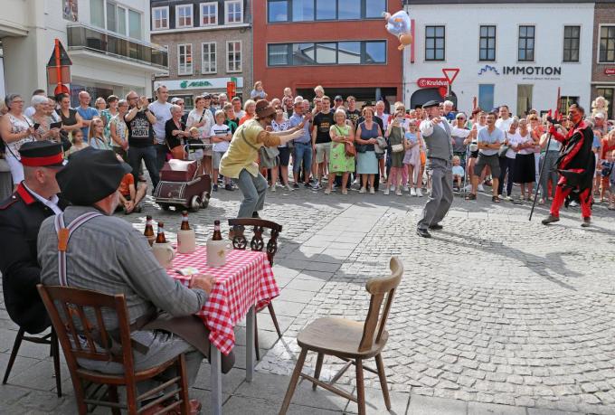In de Mechaegelstoet worden vooral oude ambachten uitgebeeld. Zo ook dit van barbier. Het was William Buddaert die met kwast en scheerzeep, zoals de traditie het wil, de burgemeester een scheerbeurt mocht geven. “Er is geen gevaar. Het mes is eigenlijk niet helemaal echt. Iemand snijden is onmogelijk.”, stelde William burgemeester Doutreluingne gerust. William deed al voor de vierde keer mee in de stoet, en telkens als barbier. De stoet kon overal op heel wat belangstelling rekenen. (Geert Vanhessche)