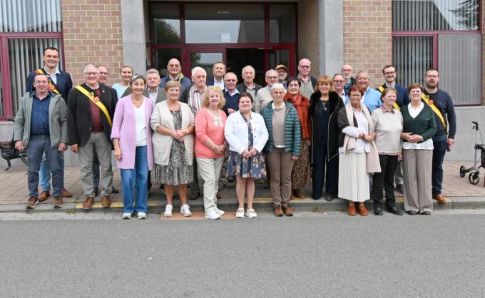 Onder impuls van Paul Dedecker, Lutgart Cardoen, André Hauspie, José Pype, Johan Santy, Ronny Vandamme en Sonja Taillieu kwamen de zeventigjarigen Renée Bostyn, Godelieve Hillewaere, Yolande Impens, Marleen Lapere, Annie Merlevede, Henriette Samyn, Nadine Sintobin, Christa Vandenameele, Carlos Dumortier, Patrick Durnez, Stefaan Hostens, Etienne Lefevre, Frans Ugille, Jozef Vanraepenbusch en Guido Verholle voor een feestelijke viering bijeen op het gemeentehuis van Zonnebeke. We zien de zeventigjarigen in het gezelschap van burgemeester Koen Meersseman, de schepenen en de raadsleden bij de ontvangst op het gemeentehuis. (ZB/foto ZB)