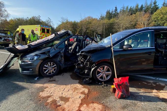 In een van de twee wagens zat een familie met drie kleine kinderen. De bestuurder zat gekneld. Hij was er het ergst aan toe hij werd door de brandweer bevrijd en samen met de rest van de familie naar het ziekenhuis overgebracht.
