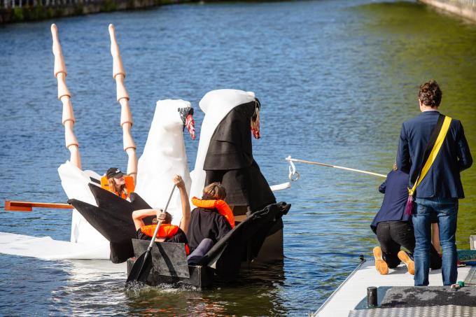 Aan de Langerei in Brugge vond dit weekend een opmerkelijke ceremonie plaats. De ‘bootjeszwanen’ Langbeen en Kortneck stapten er namelijk… in het huwelijksbootje.