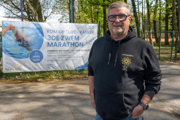 Wielsbekenaar Marc Lambrecht (65) zwemt op zondag 27 april non-stop liefst 33 kilometer, de afstand tussen Frankrijk en Groot-Brittannië. Dit doet hij niet in open zee, maar baantje per baantje in het zwembad van Wielsbeke. Samen met de Zundagsrijders wil hij zo geld inzamelen voor Kom op tegen Kanker. “Ik draag deze uitdaging op aan Annemie Quintyn, een dierbaar lid van onze groep die we aan kanker verloren”, zegt Marc.