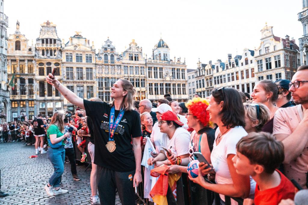 Een dag nadat ze voor de tweede keer op rij het Europees kampioenschap basketbal wonnen, werden de Belgian Cats ontvangen door de koning. Nadien werden ze door een hele groep supporters opgewacht op de Grote Markt in Brussel, waar een stevig beestje losbarstte.