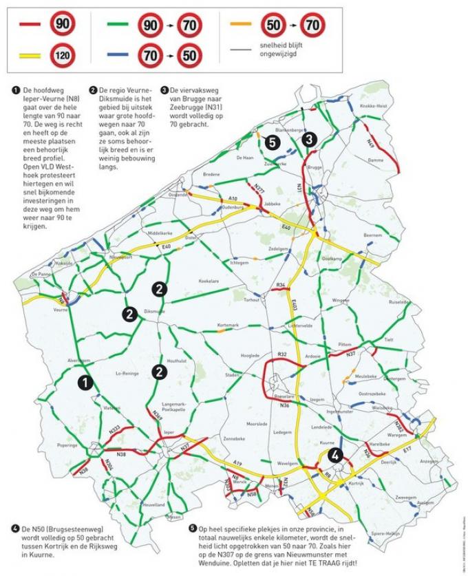 De beslissing van Vlaams Minister voor Mobiliteit Ben Weyts om vanaf 1 januari 2017 een maximum snelheid van 70 km per uur buiten de bebouwde kom als norm in te stellen, stuit op verdeelde reacties. In Veurne en Diksmuide zijn er heel wat aanpassingen.