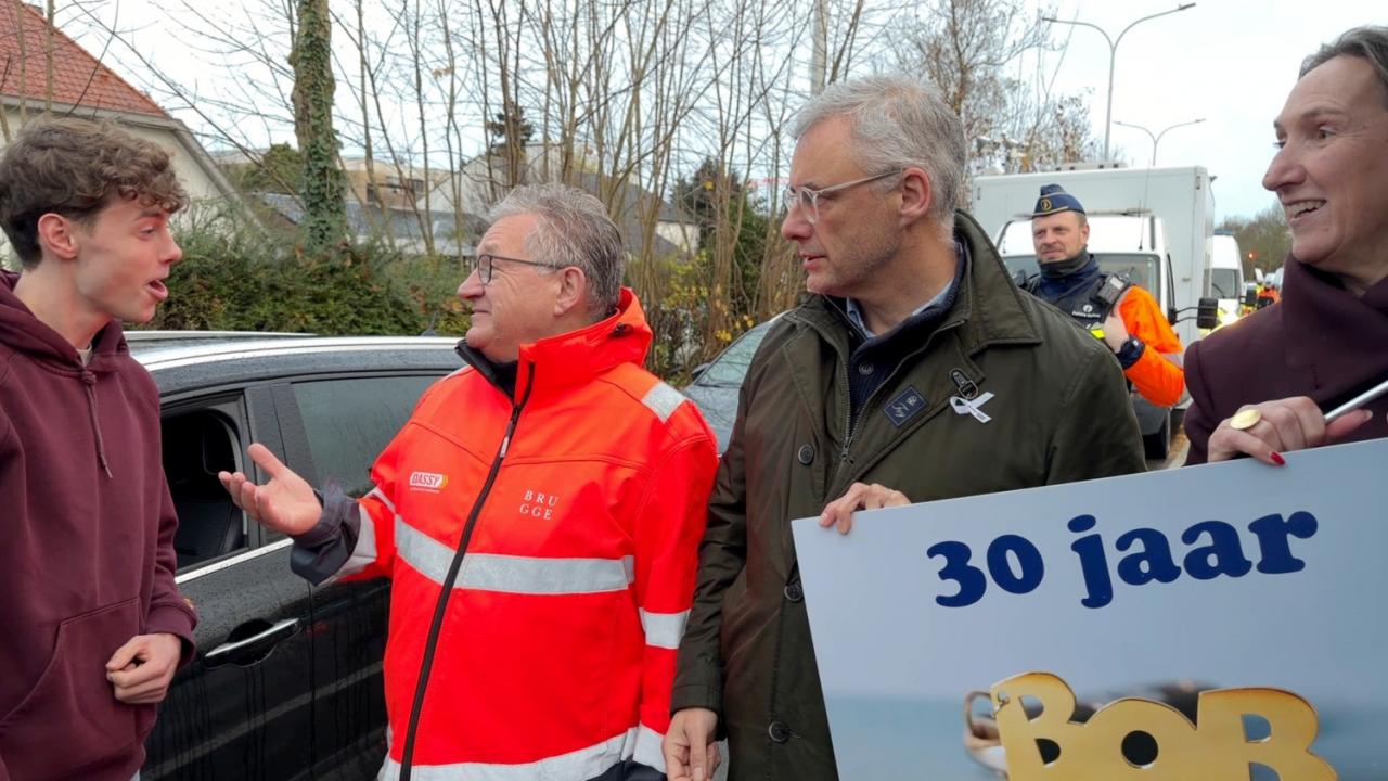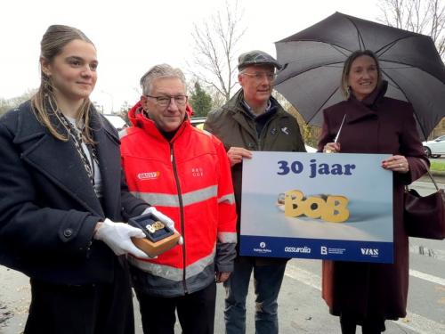 De BOB-campagne is dit jaar aan een jubileumeditie toe. Het is namelijk 30 jaar geleden dat de eerste BOB-campagne gelanceerd werd. Voor de gecontroleerde chauffeurs die met alles in orde bleken was er nog een leuke actie. De aanwezige burgemeesters van de respectievelijke politiezones Brugge, Damme, Knokke-Heist bepaalden met de worp van een dobbelsteen een bestuurder uit de gecontroleerde voertuigen uit die een vergulde BOB-sleutelhanger met een geschatte waarde van meer dan 250 euro in ontvangst mocht nemen.
