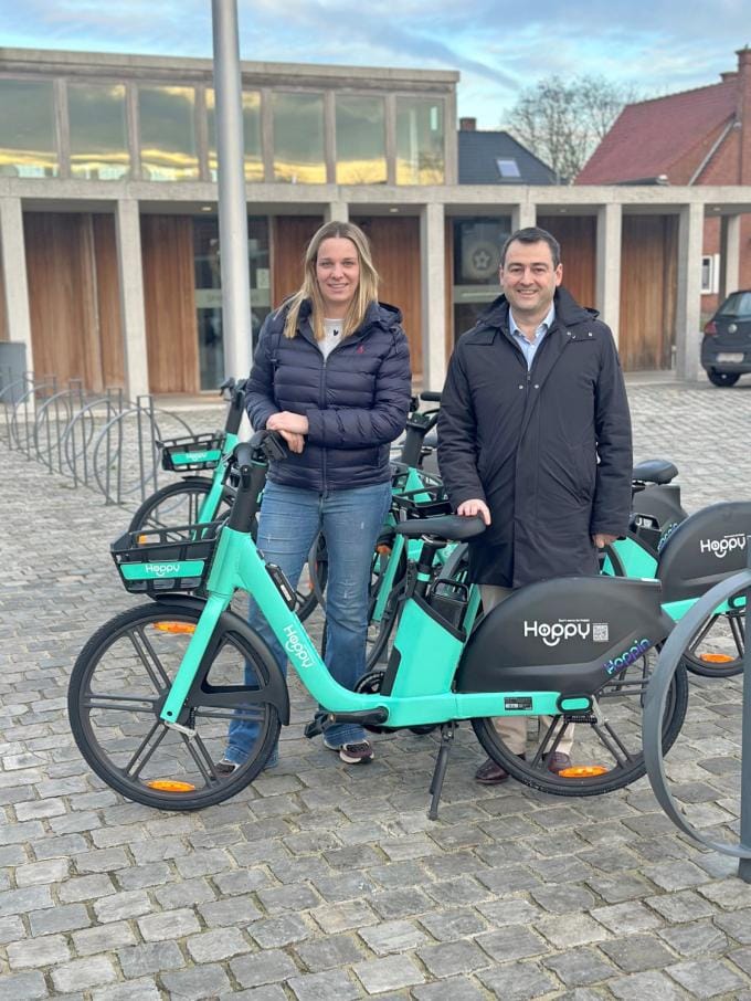De eerste tien deelfietsen zijn geleverd in Houthulst. Er staan vijf fietsen ter hoogte van de bushalte op de Markt in Houthulst en vijf ter hoogte van het Stationshuis in Merkem. In het voorjaar van 2026 komen nog vier deelfietsen in Klerken ter hoogte van de bushalte aan de kerk en vier deelfietsen op het marktpleintje in Jonkershove. Download de Hoppy-app en selecteer een vrije fiets in je buurt. Scan de QR-code op het stuur om je rit te starten. Aan het einde van je rit sluit je die af in een van de 66 parkeerzones. Je neemt een foto als bewijs van correcte plaatsing. De zones zijn duidelijk aangeduid in de app en op het terrein. Je betaalt per rit een halve euro voor een halfuur of kiest voor een maandabonnement van vijf euro voor één uur fietsen per dag en twee uur pauzeren. Je kan je rit ook vooraf reserveren. (ACK)