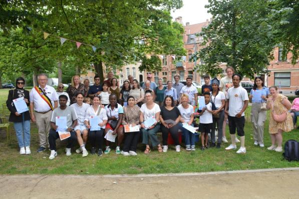 Brugge / Fietsen Brugge / Fietsen Volwassenen ontvangen diploma na fietscursus in Brugge 28 juni 2025