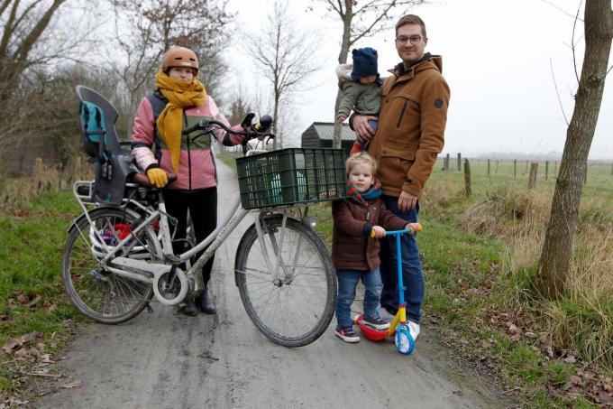 Het is langs daar dat Phaedra elke dag naar haar werk fietst. Zoontje Nestor (negen maanden) gaat mee in de fietskar naar de onthaalmoeder in Gistel, zijn oudere broer Basiel (3) loopt school in Eernegem. “Ik ben niet de enige die klaagt”, zucht Phaedra. “Er is altijd wel iets mis met mijn elektrische fiets. In drie of vier jaar heb ik al vijf nieuwe banden moeten leggen en ook de remblokjes zijn al meermaals vervangen. Of de ketting valt af, de motor blokkeert, het wielslot sluit niet meer… Ook de rits van de fietskar is binnen de kortste keren stuk”