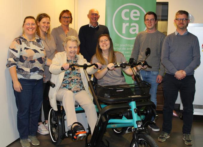 Bij deze fiets zitten de bestuurder en de bewoner naast elkaar waardoor er op een aangename manier een gesprek gevoerd kan worden. “Beiden gaan samen op pad om de eigen gemeente te verkennen. Herinneringen aan vroeger worden opnieuw bovengehaald, de bewoner blijft lichamelijk actief en kan kennissen van vroeger ontmoeten. Daarnaast biedt de rolstoelfiets de mogelijkheid om meer van de buitenlucht en de omgeving te genieten. We bedanken ook nog CERA Foundation om deze realisatie mede mogelijk te maken dankzij hun financiële steun’. (EVG)