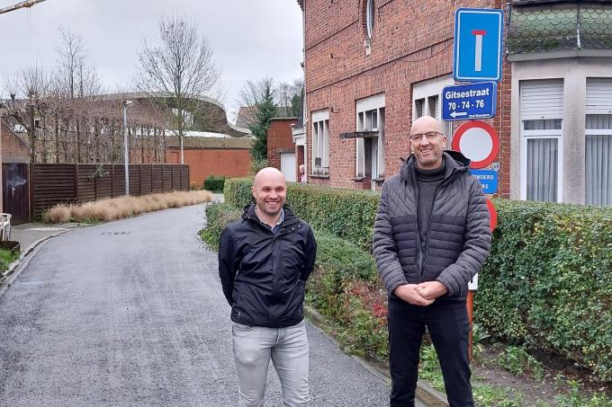 “Tussen de woningen is daar een klein doodlopend straatje dat ook als nooduitgang fungeert voor onze school. Die toegang wordt tot het einde van dit schooljaar de voorlopige tweede ingang van de school. Om alles veilig te laten verlopen zijn er ook wat wijzigingen in de Gitsestraat zelf. Die krijgt vanaf maandag 8 januari voor zes maanden eenrichtingsverkeer vanaf de Steenstraat richting Hoogleedsesteenweg. Er komt ter hoogte van de ingang een kiss-&-ride-zone. We zorgen ‘s morgens vanaf acht uur daar voor toezicht, zodat ouders niet nodeloos of te lang parkeren.”