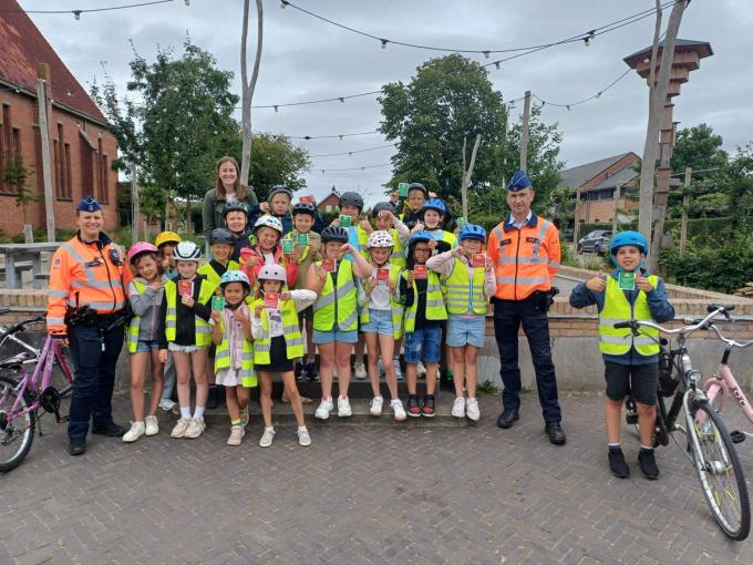 “We lieten de kindjes één voor één fietsen in de fietszone en stelden ons met de rest van de leerlingen verdekt op aan de kerk”, vertelt wijkagente Shanna Buyle. “We keken van op een afstand of de voertuigen correct achter de leerlingen bleven rijden, of de fietsers in de fietszone voorbijstaken. De resultaten waren helaas teleurstellend. Van de 39 voertuigen staken 16 voertuigen de kinderen voorbij in de fietszone. De 39 voertuigen werden aan de kant gezet en kregen van een leerling een duimpje omhoog wanneer ze achter de fiets bleven rijden en een duimpje omlaag wanneer ze de fietser voorbijstaken. Aan de bestuurders werd nog eens meegedeeld dat ze in een fietszone steeds achter de fietser moeten blijven rijden en de toegelaten snelheid er 30 kilometerper uur betreft. Indien ze niet achter de fietser blijven rijden, dan is dit normaal een onmiddellijk inning van 58 euro.”