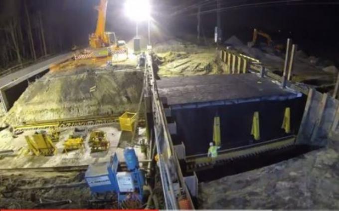 Spoorwegbeheerder Infrabel verving vorige maand vijf overwegen in Beernem en Aalter op de spoorlijn tussen Brugge en Gent. In Beernem worden de twee overwegen vervangen door fietserstunnels. In deze video zie je via een timelapse hoe een tunnelkoker via een telebediend glijsysteem centimeter per centimeter onder de sporen wordt geschoven. De tunnelkokers wegen maar liefst 400 en 450 ton. Goed voor een klusje van 52 uren…