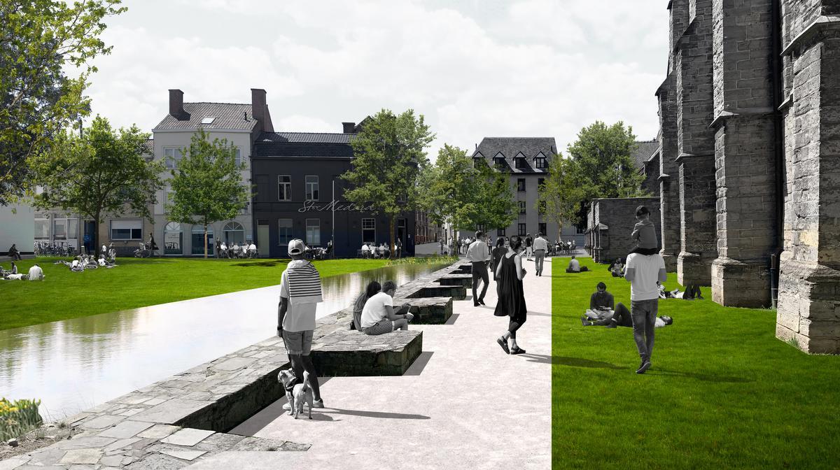 De omgeving rondom de kerk is vandaag weinig kwalitatief. De ruimte rondom de kerk wordt daarom volledig heraangelegd. Onnodige verharding en niveauverschillen worden weggenomen. Een eenvoudig en helder ontwerp zal de historische elementen beter zichtbaar maken. Rondom de kerk wordt voorzien in meer groen en bomen. Een heldere padenstructuur zorgt voor vlotte verbindingen voor fietsers en wandelaars van en naar het Begijnhofpark. Rondom het Deken Zegerplein wordt ruimte voorzien voor gezellige terrasjes.