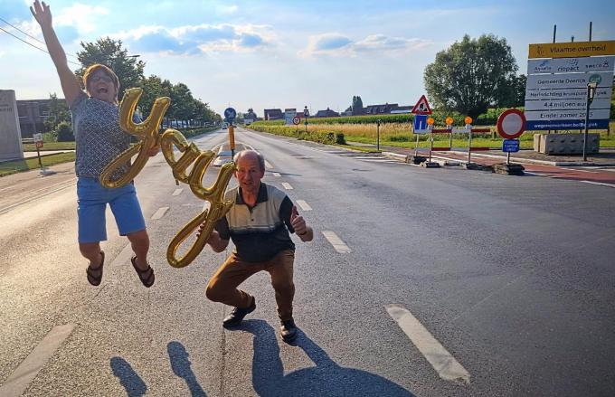 “Het was uitgerekend op 18 maanden en het zijn er 23 geworden”, rekent Ines Lambert nuchter. “De weersomstandigheden speelden daarin een grote rol.” Luc knikt: “Het enige dat de werkmannen konden, was verder werken.” Voor vrachtwagenchauffeurs was het geen pretje. “Die hadden te weinig ruimte in de bochten en voor de wegenwerkers was het ook geen cadeau. Dagelijks zetten zij de verkeerssignalisatie weer recht”, zegt Luc. Toch overheerst opluchting: “Iedereen had zijn eigen theorie over de einddatum, maar pas als AWV het bevestigt, weet je het zeker.” En dat goede nieuws deelde Waw Balloons meteen op sociale media tot blijdschap van allen.