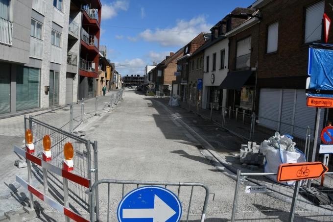 Op donderdag 28 maart werd dit stuk Kerkstraat voorzien van een nieuwe laag beton. Toch zal het rijvak nog tot en met 25 april verder afgesloten blijven om het beton de kans te geven volledig uit te harden. Voetgangers en fietsers kunnen echter wel verder gebruik blijven maken van het naastgelegen voet- en fietspad. Ook de handelszaken blijven verder per fiets en te voet bereikbaar.