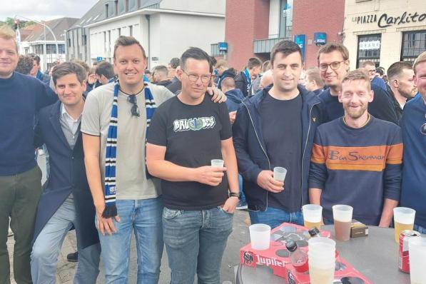 Brugge / Samenleving Brugge / Samenleving KIJK - Clubsupporters verzamelen met sprankeltje hoop voor de laatste match op de verkeersvrije Platse: waterkans op landstitel De Platse van Sint-Andries is sedert 14 uur deze namiddag voor alle verkeer afgesloten, naar aanleiding van de laatste wedstrijd van Club Brugge. Er is slechts een waterkansje dat blauw-zwart de titel wint, toch zijn de horecazaken hoopvol en hebben een kampioenenviering voorbereid. De supporters wachten de apotheose van de play-offs met een sprankeltje hoop af. 25 mei 2025
