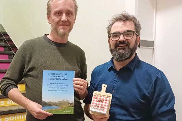 Desselgem / Cultuur Desselgem / Cultuur Gil en Jo presenteren scheurkalender ‘Nen dag menne kjeer - 2026’: “Dagelijkse bron van plezier” De Waregemse vrienden Gil Bossuyt en Jo Declerck verzamelden jarenlang taalpareltjes. De kiem voor hun leuke scheurkalender ‘Nen dag menne kjeer – 2026’ die nu te koop is. 18 november 2025