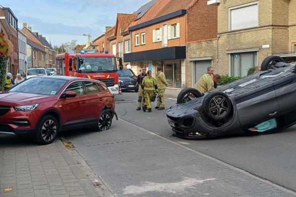 Poperinge / Verkeersongeval Poperinge / Verkeersongeval Wagen op zijn dak in centrum van Poperinge In de Bruggestraat pal in het centrum van Poperinge botste zondagvoormiddag om 11 uur een Mercedes op een geparkeerde Opel Grandland. De Mercedes belandde door de klap op zijn dak. 19 oktober 2025