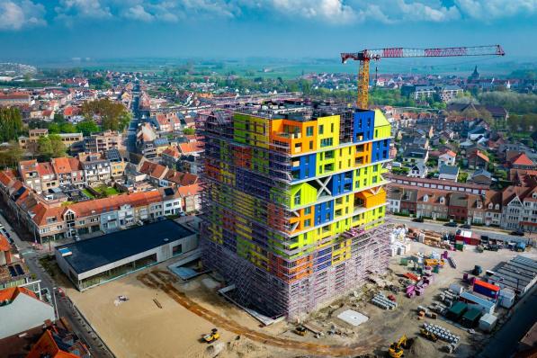 Heist-Aan-Zee / Samenleving Heist-Aan-Zee / Samenleving Wooneenheden in spraakmakende toren voor 60 procent verkocht: Hoost krijgt vorm én kleur De spraakmakende Hoost-toren aan het Maes- en Boerenboompleinnadert zijn afwerking, verdwijnt stilaan uit de stellingen én geeft zo ook zijn opvallende kleuren bloot. “De oplevering is gefaseerd voorzien in het najaar van dit jaar”, zegt projectmanager Jonas Vanhauter van CAAAP. “Intussen is zo’n 60 procent van de 97 wooneenheden verkocht. Voor de commerciële ruimtes wordt nog een invulling gezocht die de buurt een meerwaarde geeft.” 22 april 2025