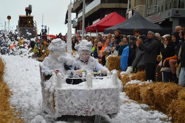 Blankenberge / Vrije tijd Blankenberge / Vrije tijd El Carello heeft de snelste, Willy Willy is pechvogel van ’t jaar: kletsnatte zeepkistenrace is schot in de roos Het sneeuwkanon zorgde dit jaar voor extra spektakel, en de regen kon de pret niet drukken: de vierde editie van de Blankenbergse zeepkistenrace was met 21 deelnemers opnieuw een absolute voltreffer. 25 november 2025