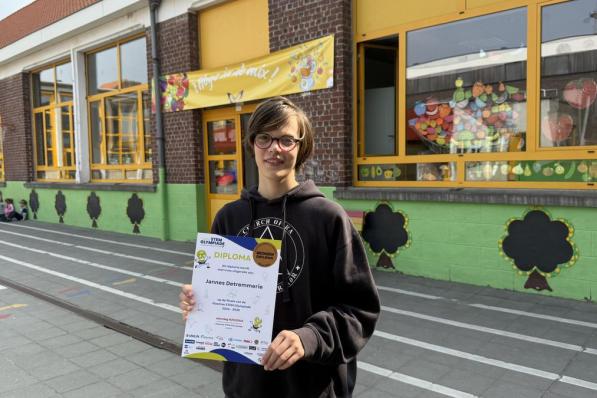 Kortrijk / Onderwijs Kortrijk / Onderwijs Jannes haalt brons tijdens STEM Olympiade 2025: “Fantastische ervaring die me nog lang zal bijblijven” Feest en felicitaties deze maand voor Jannes Detremmerie uit Kortrijk, want hij mocht schitteren in de grote finale van de Vlaamse STEM Olympiade! Na een spannende selectie uit meer dan 24.000 deelnemers werd de jonge STEM-talentvolle finalist verkozen tot een van de 65 knappe koppen die de eindstrijd mochten aangaan. Een strijd waarin hij uiteindelijk brons behaalde. 5 mei 2025