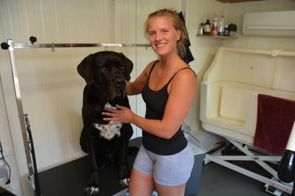 Annemie Van Looy (29) runt hondentrimsalon L’ami Parfait: “Ik hou niet van ‘bandwerk’” De naam verraadt soms de inhoud en voor het hondentrimsalon L’ami Parfait in de Steenstraat 138 in Meulebeke is dit zeker het geval. Uitbaatster is de 29-jarige Annemie Van Looy en L’ami Parfait voor Annemie is haar imposante Boyka, een zes jaar oude Cani Corso van Italiaanse origine.