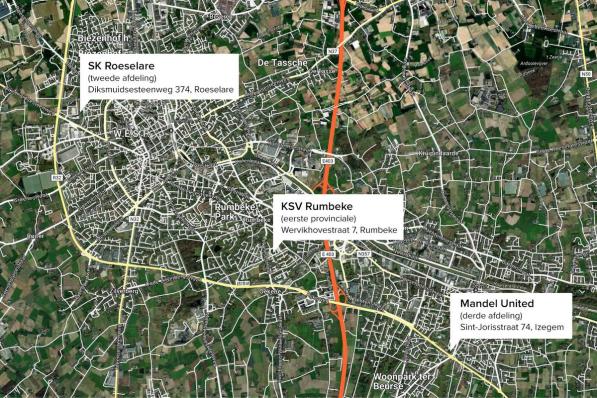 Izegem / Voetbal Izegem / Voetbal Kampioenen van de Rijksweg: ‘buren’ SK Roeselare, KSV Rumbeke en Mandel United spelen in één seizoen allen kampioen Het seizoen 2024-2025 zal ingaan als het kampioenenjaren van drie clubs die op amper enkele kilometer van elkaar liggen, hun stadion situeert zich ook telkens langs of op een boogscheut van de Rijksweg (N36-R32). Mandel United (derde afdeling) pakte zopas al laatste de titel op de slotspeeldag in derde afdeling. SK Roeselare (tweede afdeling) en KSV Rumbeke (eerste provinciale) mochten al eerder een titelfeest vieren. 27 april 2025