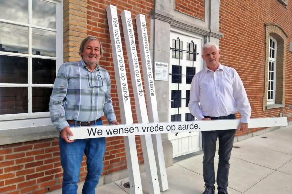 Ruiselede / Samenleving Ruiselede / Samenleving NSB Ruiselede schenkt vredesduif: nieuwe herdenkingslocatie aan Vredeskapel om vredesgedachte te koesteren en gesneuvelden te eren Op dinsdag 13 augustus overhandigde de nationale NSB-voorzitter Leon De Turck officieel een nieuwe vredesduif aan burgemeester Greet De Roo. Dit embleem wordt vanaf 7 september een nieuwe herdenkingslocatie aan de Vredeskapel in de Aalterstraat. “Deze vredesduif zal de nood symboliseren voor een duurzame vrede, die niet vanzelfsprekend is”, aldus de Ruiseleedse NSB-voorzitter Paul Desmet. “Het wordt ook een hommage aan alle gesneuvelden bij tal van conflicten wereldwijd, waarbij ook Belgische militairen betrokken zijn.” 13 augustus 2024