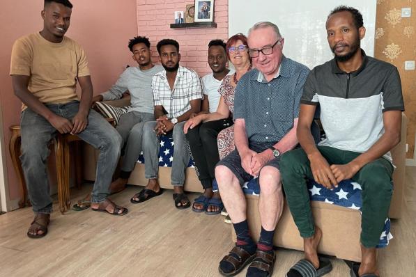 Oostende / Samenleving Oostende / Samenleving Koenraad biedt onderdak aan vijf vluchtelingen, maar moet hen nu op straat zetten na een wooninspectie: “Anders verlies ik zelf mijn woning” Koenraad Lecluyse stelt sinds anderhalf jaar de twee lege kamers in zijn appartement in Oostende ter beschikking aan vluchtelingen. Koenraad is blind. Hij is blij met de ondersteuning en het gezelschap van Ibrahim, Salah, Mustapha, Abdu en Abdallah. De jonge mannen moesten weliswaar verplicht weg anders zou de woning ongeschikt verklaard worden. “Dit is gewoon absurd”, zucht Koenraad. 15 juli 2025