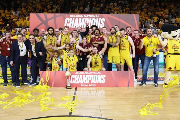 Oostende / Basketbal Oostende / Basketbal Filou Oostende behaalt een fantastische veertiende landstitel op rij Voor eigen publiek in een uitverkochte COREtec Dôme heeft Filou Oostende zaterdagavond zijn 26ste landstitel in de wacht gesleept. Voor vijfduizend supporters, die de Yellow Wall vormden, wonnen de Zeekapiteins Bossche ook de vierde wedstrijd in de finale van de play-offs tegen Kangoeroes Mechelen met 100-76. Alleszeggende cijfers. 8 juni 2025