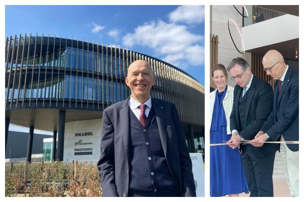 Ieper / Bedrijven Ieper / Bedrijven Picanol Group opent nieuw hoofdkantoor in aanwezigheid van Bart De Wever: “Een aangename en open werk- en ontmoetingsplek” Picanol Group heeft op vrijdag 25 april zijn nieuwe hoofdkantoor in Ieper officieel geopend in aanwezigheid van eerste minister Bart De Wever. De moderne en duurzame werk- en ontmoetingsplek met een indrukwekkende vloeroppervlakte van 20.000 vierkante meter biedt de nodige ruimte voor de verdere groei van Picanol, Psicontrol en Proferro. Het nieuwe hoofdkantoor werd opgetrokken op het bestaande bedrijfsterrein in Ieper en is verbonden met de productieafdelingen op de site. CEO Luc Tack benadrukt dat deze investering niet alleen zorgt voor een duurzame verankering van het bedrijf in Ieper, maar ook het geloof in de toekomst van de maakindustrie bevestigt. Ook de eerste minister onderstreepte het belang van de Belgische industrie voor de welvaart en groei van onze samenleving. 25 april 2025