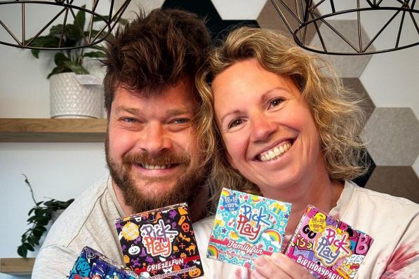 Beernem / Vrije tijd Beernem / Vrije tijd “Ideale ijsbreker om elkaar te leren kennen”: Johannes (42) en Melissa (41) lanceren eigen gezelschapsspel Melissa Van Paemele (41) en Johannes Mortier (42) uit Beernem vormen sinds een drietal jaar een nieuw samengesteld gezin met vijf kinderen. Om de kinderen met elkaar kennis te laten maken, bedacht het koppel een spelletje. Enkele jaren later groeide het spel Pick ‘n Play met hun bedrijf Glowflow uit tot een spel dat online en bij Standaard Boekhandel te koop is. 12 mei 2025