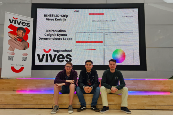 Emelgem / Onderwijs Emelgem / Onderwijs Studenten voorzien Vives van nieuwe led-installatie Drie studenten Elektronica-ICT aan Vives Kortrijk hebben in het kader van het vak Business Project Advanced het technologiegebouw van hun school van een nieuwe led-installatie voorzien. Seppe Derammelaere (Meulebeke), Milan Blairon (Izegem) en Kyano Caignie (Ieper) werkten alles van begin tot einde uit. 6 juni 2025