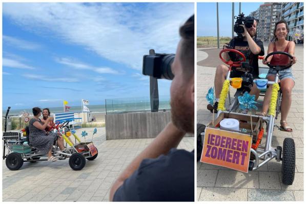 Brugge / Televisie Brugge / Televisie Evi (38) sprokkelt verhalen met de gocart op de dijk voor ‘Iedereen zomert’ op VRT 1: “Valt op hoe vrolijk de mensen zijn aan zee” Vanaf vanavond zien we de gloednieuwe rubriek ‘AperoCart’ in ‘Iedereen zomert’, de zomerse variant van ‘Iedereen Beroemd’ op VRT 1. Reporter Evi Brutin (38) uit Brugge sprokkelt er tot het einde van de zomer twee keer per week leuke verhalen langs de dijk, met behulp van een gocart en een mocktail. “Grappig om te zien hoeveel mensen daar voor open staan.” 21 juli 2025