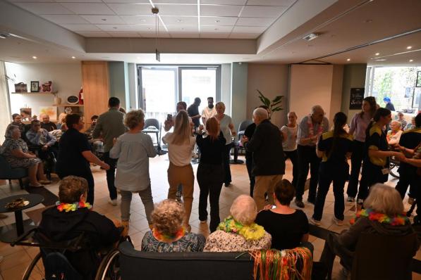 Menen / Evenement Menen / Evenement Nooit te oud voor Tomorrowland: DJ-broers brengen festival naar woonzorgcentrum Raven in een rusthuis? Het lijkt een contradictie, maar dinsdagnamiddag werd wzc Huize Ter Walle in Menen even omgetoverd tot een festivalterrein. DJ-duo Medaase ging de uitdaging aan om ambiance te brengen in het rusthuis. En of ze erin slaagden. 16 april 2025