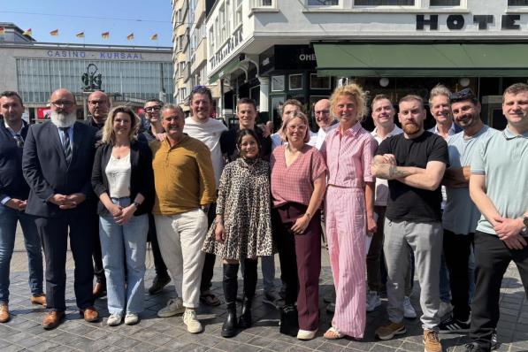 Oostende / Horeca Oostende / Horeca Stad zet sterrenchef Dimitri Proost van restaurant Haut in de bloemen: “Dit zal Oostende een boost geven” Restaurant Haut kreeg bezoek van Oostends schepen voor Toerisme en Protocol Niko Geldof, die namens de stad de felicitaties overmaakte aan Dimitri Proost, maître Randy Degroote en zijn team. Haut behaalde maandag een Michelinster, minder dan een jaar na de opening. Een uitzonderlijke prestatie. 30 april 2025