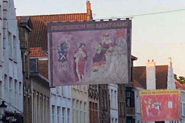 Brugge / Cultuur Brugge / Cultuur Geen Heilig Bloedprocessie, wel vlaggen voor Brugges Mooiste Dag Geen Heilig Bloedprocessie dit jaar op Hemelvaartdag, maar de Confrérie van het Heilig Bloed zorgt toch in samenwerking met vzw Brugs HandelsCentrum met vlaggen voor de nodige sfeer in de Brugse binnenstad. 6 mei 2021