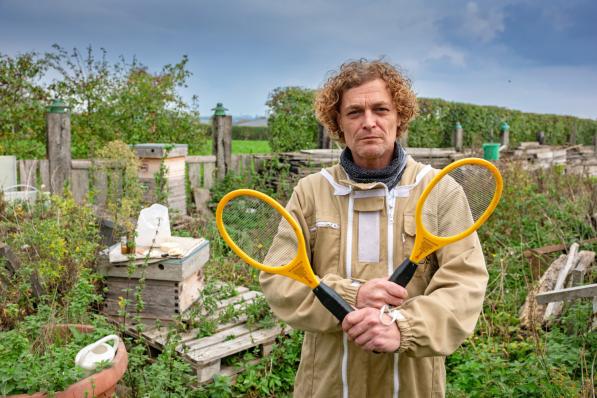 Poperinge / Natuur Poperinge / Natuur “Ik leef in oorlogsmodus”: imker Charly doodde al duizend Aziatische hoornaars… met elektrische vliegenmeppers Meer dan 1.000 Aziatische hoornaars doodde Charly Derycke (46) uit Poperinge de voorbije twee maanden. Zijn wapen? Twee elektrische vliegenmeppers, waarmee hij de wacht houdt aan zijn bijenkasten. Zelfs tijdens de middagpauzes op het werk… "Als ik hier niet had gestaan, dan waren al mijn bijen opgepeuzeld. Aan dit tempo zullen bijen én imkers snel uitsterven." 22 oktober 2025
