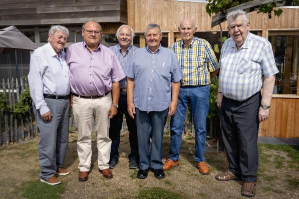 Staden / Samenleving Staden / Samenleving Soldatenvrienden zien elkaar terug in ‘t Stuttekot: “We deelden lief en leed” Zes soldatenvrienden die in 1961 in het 73ste Artilleriebataljon de C-Batterij in de Kazerne Moorslede in Delbrück gelegerd waren, kwamen in ‘t Stuttekot in Westrozebeke voor de eerste keer na corona weer bij elkaar. “Met nog vijf echtgenotes en de weduwe van onze soldatenvriend Noël Vervaele”, zeggen Freddy Verfaillie en Erik Dewitte. “De eerste bijeenkomst kwam er pas in 1992, 30 jaar nadat we in 1962 afzwaaiden.” 8 september 2022