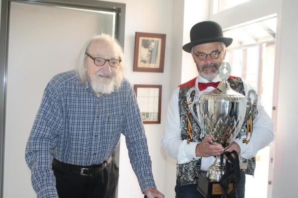 Leisele / Samenleving Leisele / Samenleving Belgisch kampioen orgeldraaien bezoekt leermeester Harry Cogge: “Ik heb dit allemaal aan jou te danken!” Belgisch kampioen orgeldraaienLudo Leper uit Leisele heeft deze voormiddag een bezoek gebracht aan de man aan wie hij zijn titel te danken heeft: Alveringemnaar Harry Cogge, die hem drie jaar geleden leerde orgeldraaien. Harry die de honderd gepasseerd is, blonk in zijn vel. 9 september 2025