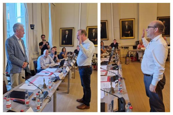 Meulebeke / Gemeenteraad Meulebeke / Gemeenteraad Algemeen directeur Hendrik Vandenbruwane en financieel directeur Maarten Compernolle van fusiestad Tielt leggen de eed af Op de laatste gemeenteraad voor het zomerreces werden de algemeen en financieel directeur van de nieuwe stad Tielt officieel aangesteld. 4 juli 2025