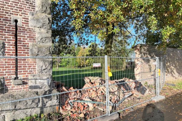 Torhout / Verkeersongeval Torhout / Verkeersongeval Kasteelmuur rond domein kasteel van Wijnendale deels ingestort na zware botsing: “Moet op exact dezelfde manier hersteld worden” Bij een zwaar verkeersongeval vrijdagavond in Torhout is een wagen tegen de muur rond het domein van het kasteel van Wijnendale gebotst. Die is daardoor op die plaats ingestort. "Omdat dit Erfgoed is, betekent dit dat het op exact dezelfde manier hersteld moet worden. Met dezelfde bakstenen, dakpannen en zonder cement. Het zal maanden duren", zegt kasteelheer Jérôme Matthieu de Wynendaele. 3 november 2025