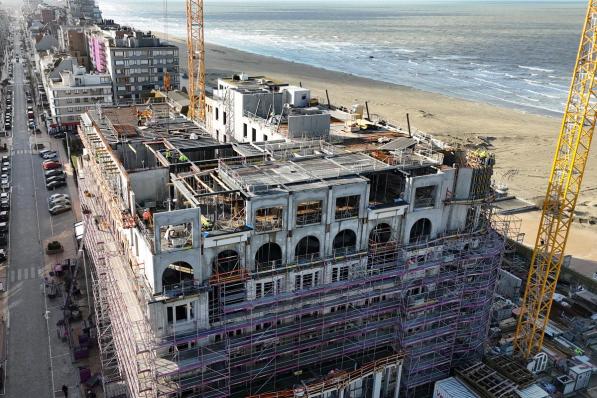 Nieuwpoort / Samenleving Nieuwpoort / Samenleving “Dit is een heel uitdagend project”: Zo ver staat de realisatie van iconisch kustgebouw The Grand in Nieuwpoort Al twee jaar wordt er gewerkt aan het imposante herbestemmingsproject The Grand in Nieuwpoort-Bad. Van de 70 appartementen, waarvan de prijs kan oplopen tot 3 miljoen euro, zijn er nog slechts vijf te koop. Maar hoe ver staat de opwaardering van het historische gebouw dat dateert uit 1924? 2 april 2025
