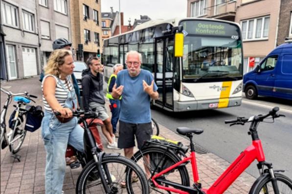Oostende / Verkeer en Mobiliteit Oostende / Verkeer en Mobiliteit Schepen en ambtenaar op pad met Werkgroep Fietseling: 22 fietsknelpunten in kaart Schepen van Mobiliteit Judith Ooms (Vooruit Plus) en mobiliteitsambtenaar Kevin Jonckheere sprongen samen met de Werkgroep Fietseling op de fiets om Oostende te doorkruisen en met eigen ogen de problemen te zien waar fietsers dagelijks mee geconfronteerd worden. Geen statische vergadering, maar een verkenningstocht van zo’n tien kilometer langs 22 knelpunten: van ontbrekende fietspaden tot gevaarlijke kruispunten en lastig geplaatste paaltjes. 16 juli 2025