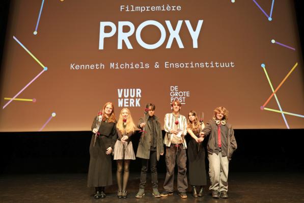 Licht vinden in duisternis: leerlingen Ensorinstituut gaan via cinema op zoek naar hun identiteit In de donkerste dagen van het jaar zocht Kenneth Michiels samen met leerlingen van het Ensorinstituut naar licht. Het resultaat is ‘Proxy’, een kortfilm samengesteld uit filmische zelfportretten van leerlingen uit het vijfde en zesde middelbaar. De feestelijke première vond plaats in De Grote Post, in het kader van het winterfestival ‘Vuurwerk’.