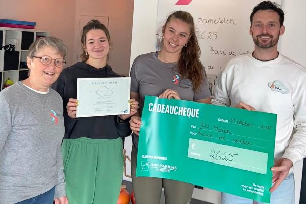 Tielt / Samenleving Tielt / Samenleving BN Motion geeft vzw Boven de Wolken duwtje in de rug van 2.625 euro Vzw Boven de Wolken heeft een mooi duwtje in de rug gekregen van de Tieltse beweegpraktijk BN Motion. Nele Billiet, Katrien Depuydt en Tiele Verbrugghe overhandigden de vzw deze week een cheque van maar liefst 2.625 euro. Het gaat om de opbrengst van het sportieve event dat BN Motion op 11 oktober organiseerde. Toen werd … 17 november 2025