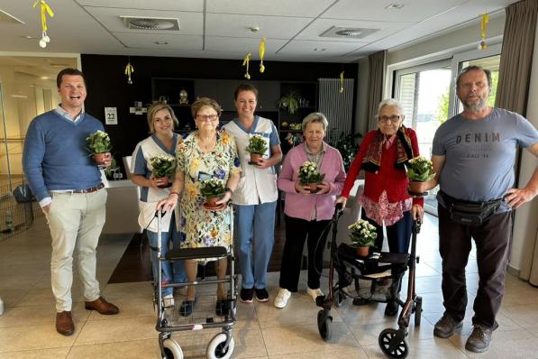 Wevelgem / Samenleving Wevelgem / Samenleving Eerste bloemen van gemeentebestuur zijn voor Monique en Jacqueline Naar aanleiding van de 53ste editie van de Bloemenmarkt op 1 mei brengt het gemeentebestuur een bezoek aan alle woonzorgcentra in de gemeente. Als blijk van waardering schenken ze een bloemetje aan alle bewoners en personeelsleden – goed voor ruim 1.000 plantjes in totaal. In wzc Het Gulle Heem werden er 255 uitgedeeld, in Sint-Jozef Moorsele 247, in Sint-Camillus 393 en in Elckerlyc 183. 28 april 2025