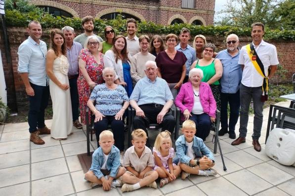 Poperinge / Samenleving Poperinge / Samenleving Briljanten geluk voor café-uitbaters Cecile en René: “Ik zit graag in gezelschap” Cecile Ryon (85) en René Boone (90) van café Saint-Joseph in Haringe vierden hun briljanten huwelijksjubileum. Cecile heeft altijd in het café gewoond en wil café Saint-Joseph openhouden zolang ze het nog aankan. Schepen Klaas Verbeke bracht de familie een bezoek. 5 augustus 2025